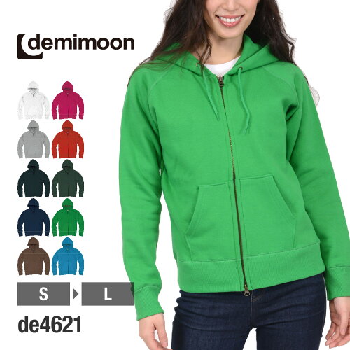 パーカー レディース 無地 demimoon 11.2オンス ZIP パーカー 裏毛 DE4621 ウィメンズ はおり パーカー ジップアップ パーカー 春 秋 冬 S M L