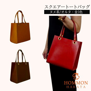 ヌメ革 スクエアートートバッグ 日本製 革バッグ キャメル レッド ブラウン レディース 通勤 通学 レザー ギフト プレゼント HOMMON HAKATA ホンモンハカタ