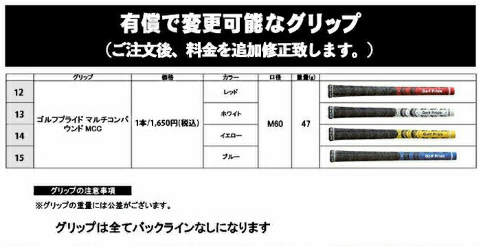(グリップテープ縦1重巻で仮バランスを取っての納品になります) ※ヘッド、グリップ、シャフトなどメーカーの在庫状況により、予告なく対応終了になる場合がございますので、ご了承お願いします。