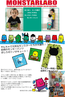 ★メール便送料無料★******思わず笑顔になっちゃうモンキーパンツやんちゃで元気なモンスター達が大暴れしている総柄パンツおしりのツノがキュート可愛すぎるデザインでギフトにもピッタリ♪