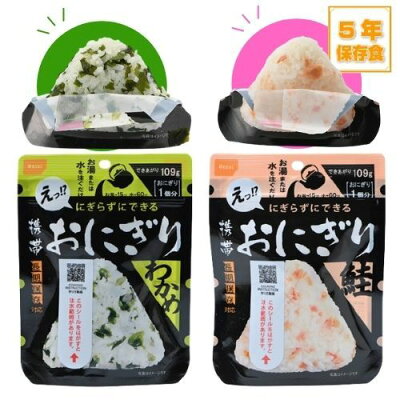 ■手を汚さず食べる事ができて衛生的■キャンプや登山、アウトドアにも最適!! おにぎり アルファ米 5年保存 追加 少量 防災グッズ 防災セット 買いなおし 買い直し 食料 非常食 保存食 アレルギー対応食 ソロキャンプ キャンプ 登山 アウトドア レジャー わかめ 鮭 さけ しゃけ 五目おこわ 塩昆布 塩こん部長 くらこんの塩こんぶ 2